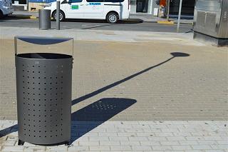 Las papeleras son del modelo 'arcoiris' del grupo Fábregas. Están construidas en acero galvanizado con pintura antimotín. Tiene un sombrero superior y es semiabatible, lo que facilita la extracción de las bolsas. Los nuevos depósitos de basura tienen una capacidad que alcanza los 85 litros.